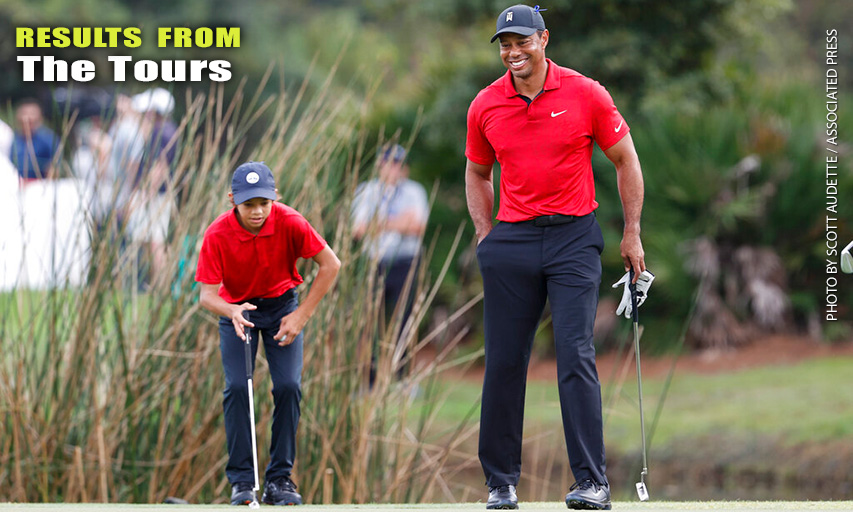This wasn’t just about Woods. His son, playing this event for the second straight year, delivered the goods down the stretch, particularly a 5-iron to 4 feet on the par-3 17th that gave them a tie for the lead going to the 18th.