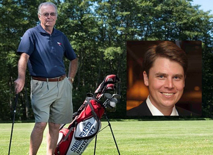 Matthew Steinbach (Inset) Will Become SFU's New Golf Coach Beginning In January Of 2017, Taking Over From John Buchanan (Pictured With SFU Golf Bag)