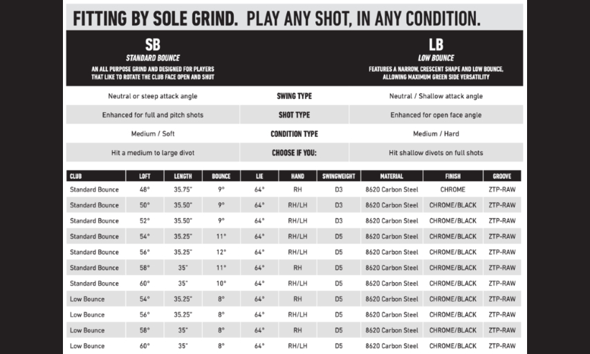 ZTP Raw Grooves offer sharper, deeper and narrower grooves and a sharper radius, which further combined with a rougher surface from the laser etching between the grooves, enable the golfer to create more friction between the clubface and the ball generating more greenside spin. Compared with plated grooves, the raw face design increase in friction reduces the ability for the golf ball to potentially skid up the clubface before it grips the face leading to a more consistent ball flight enabling golfers to get closer to the hole.