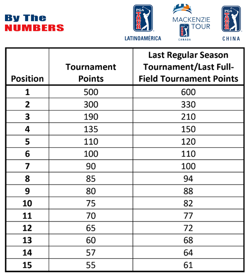 The three international Tours are moving to this modified, consistent points system to assist fans and help avoid confusion with currencies used in the current Orders of Merit. Since their inceptions, PGA TOUR Latinoamérica has based its Order of Merit on the U.S. dollar, while the Mackenzie Tour has employed the Canadian dollar and PGA TOUR Series-China recognized the Chinese yuan.