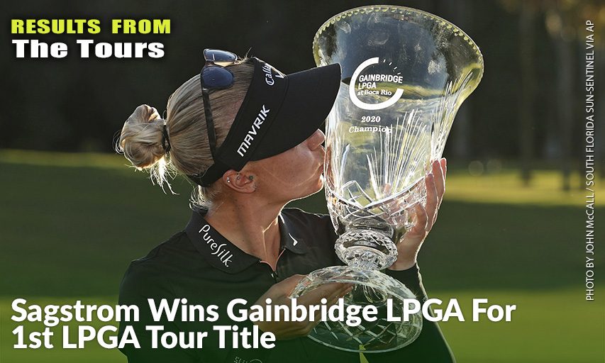 BOCA RATON, Florida — Madelene Sagstrom won the Gainbridge LPGA at Boca Rio for her first LPGA Tour title, birdieing the par-3 17th to tie for the lead and winning with a par when Nasa Hataoka missed a 3-footer on the last.